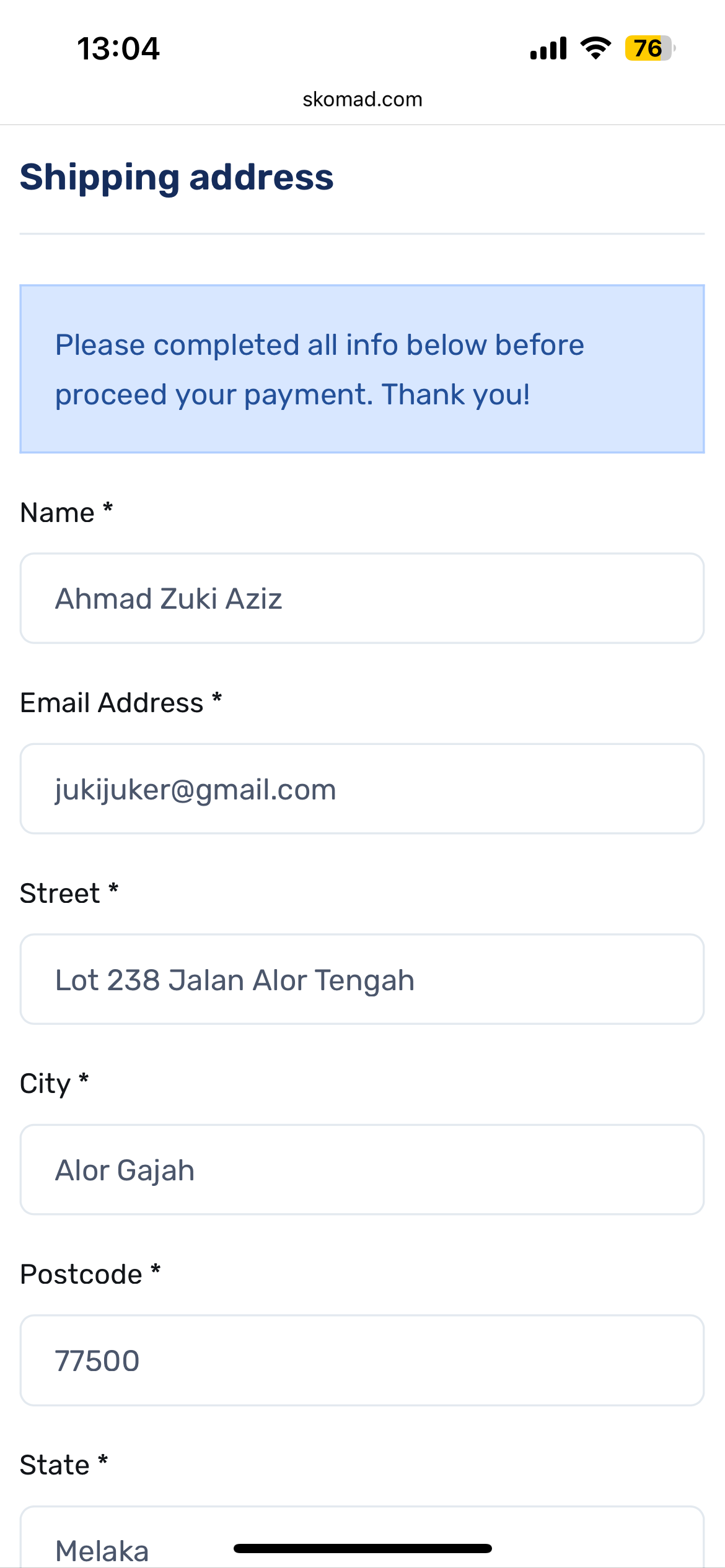 On checkout' page, please fill up all details required - Name, Phone no, Email Address, Shipping Address. You can apply discount if you have any valid coupn code.