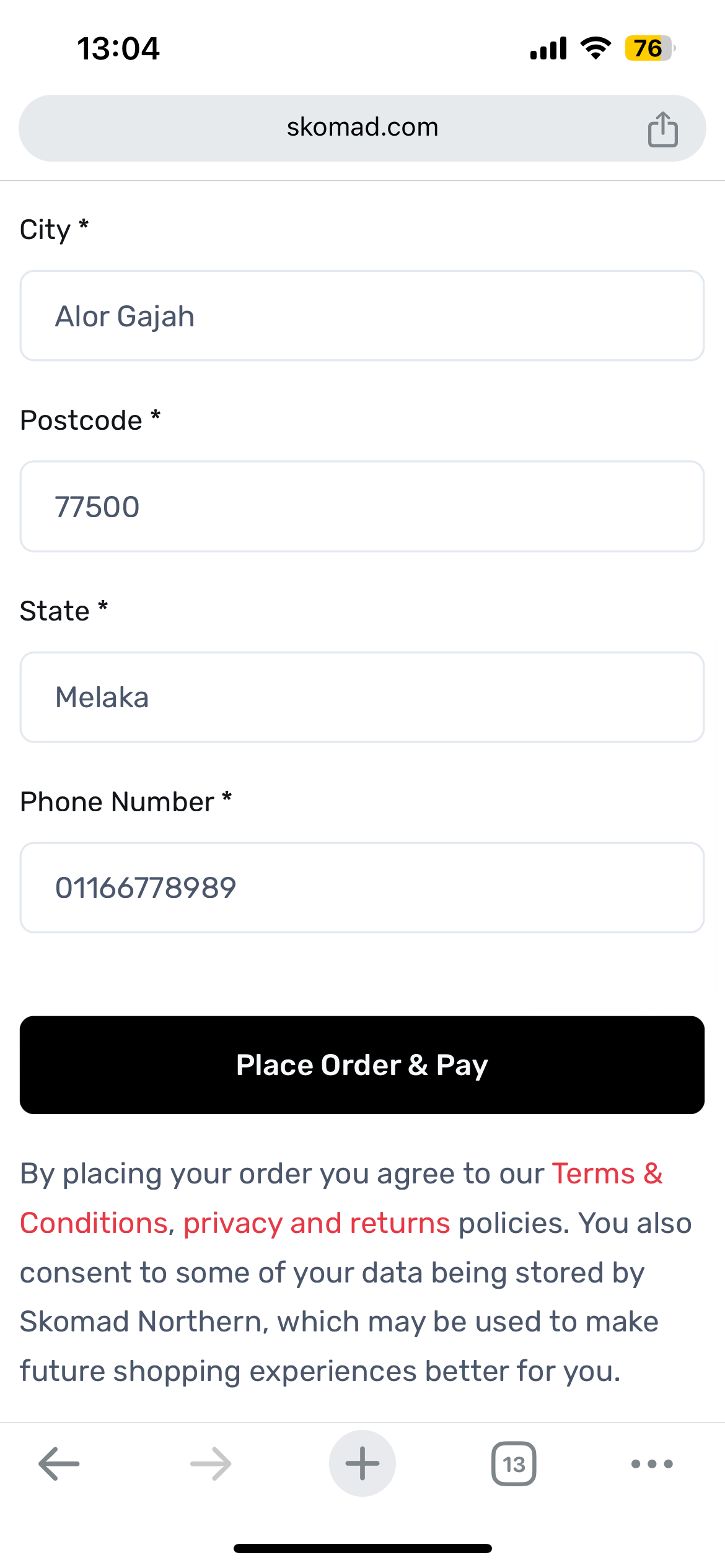 Click Place Order & Pay's button to officially place your order and to make a payment. After this button clicked, you will be redirected to Payment Form's page that show summary details of your order.