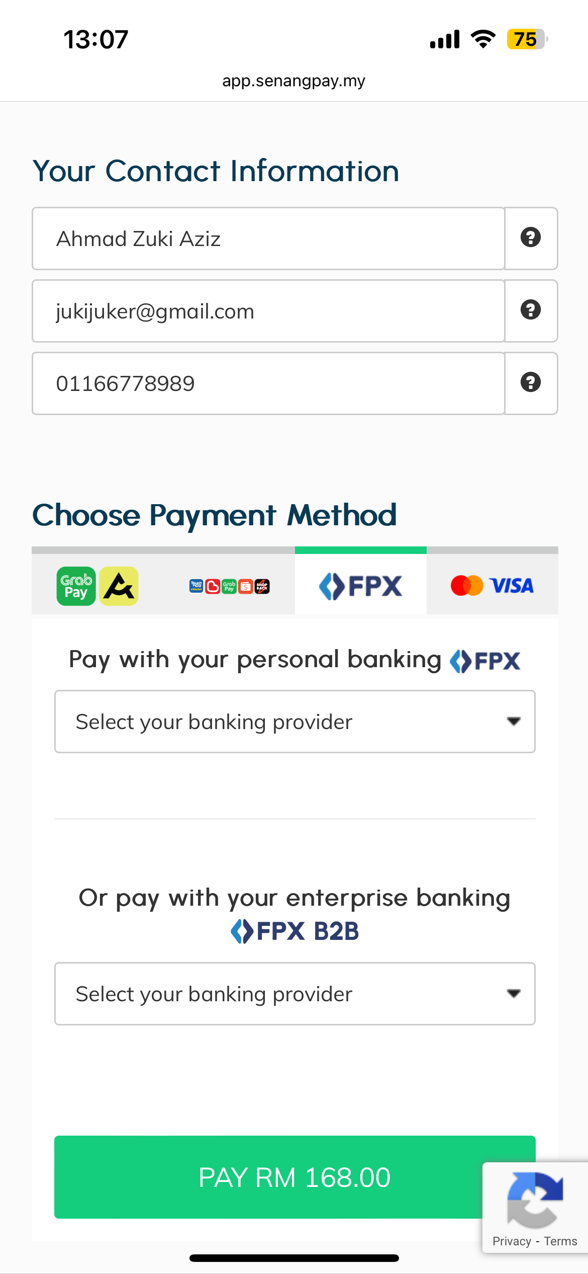Here an example if choosing FPX as payment method:-