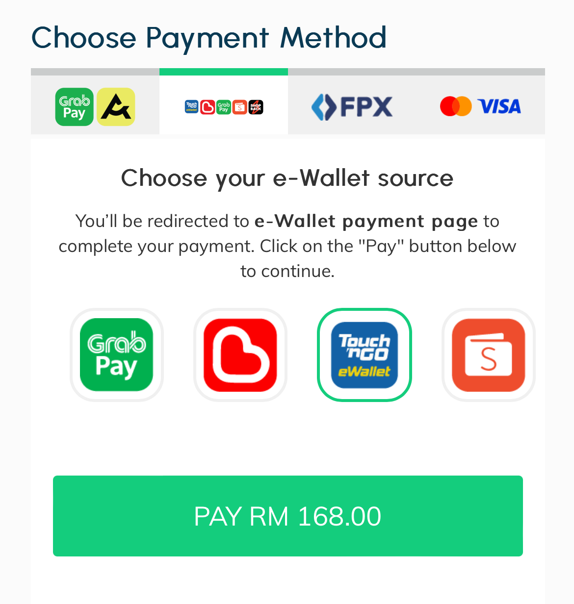 - e-Wallet - TnG, Boost, ShopeePay and etc